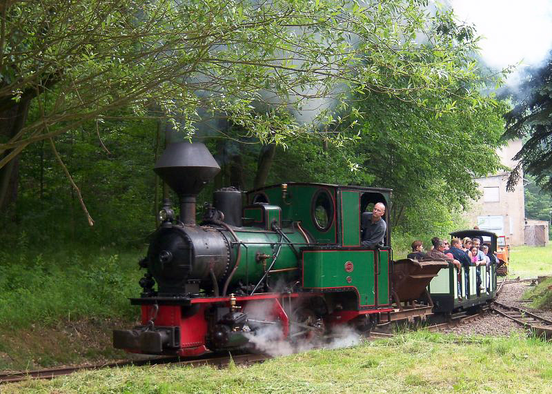 Fast den gesamten Tag über war die Dampflok vor dem Personenzug im Einsatz. Hier auf der neuen Trasse kurz vor dem Oberen Bruch. Foto: M. Otto, 12.6.2011