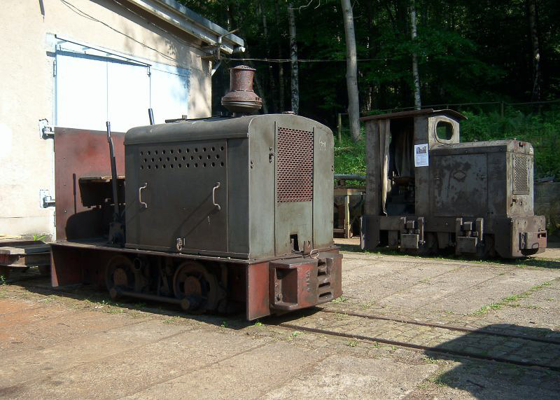 Die OME 117 aus der Sandgrube Grüngräbchen und die MD 2 d aus Grechwitz sonnen sich im milden Abendlicht. Beide Loks befinden sich im letzten Betriebszustand – man kann ihnen förmlich ansehen, welch hartes Arbeitsleben hinter ihnen liegt. Foto: M. Otto, 12.6.2011